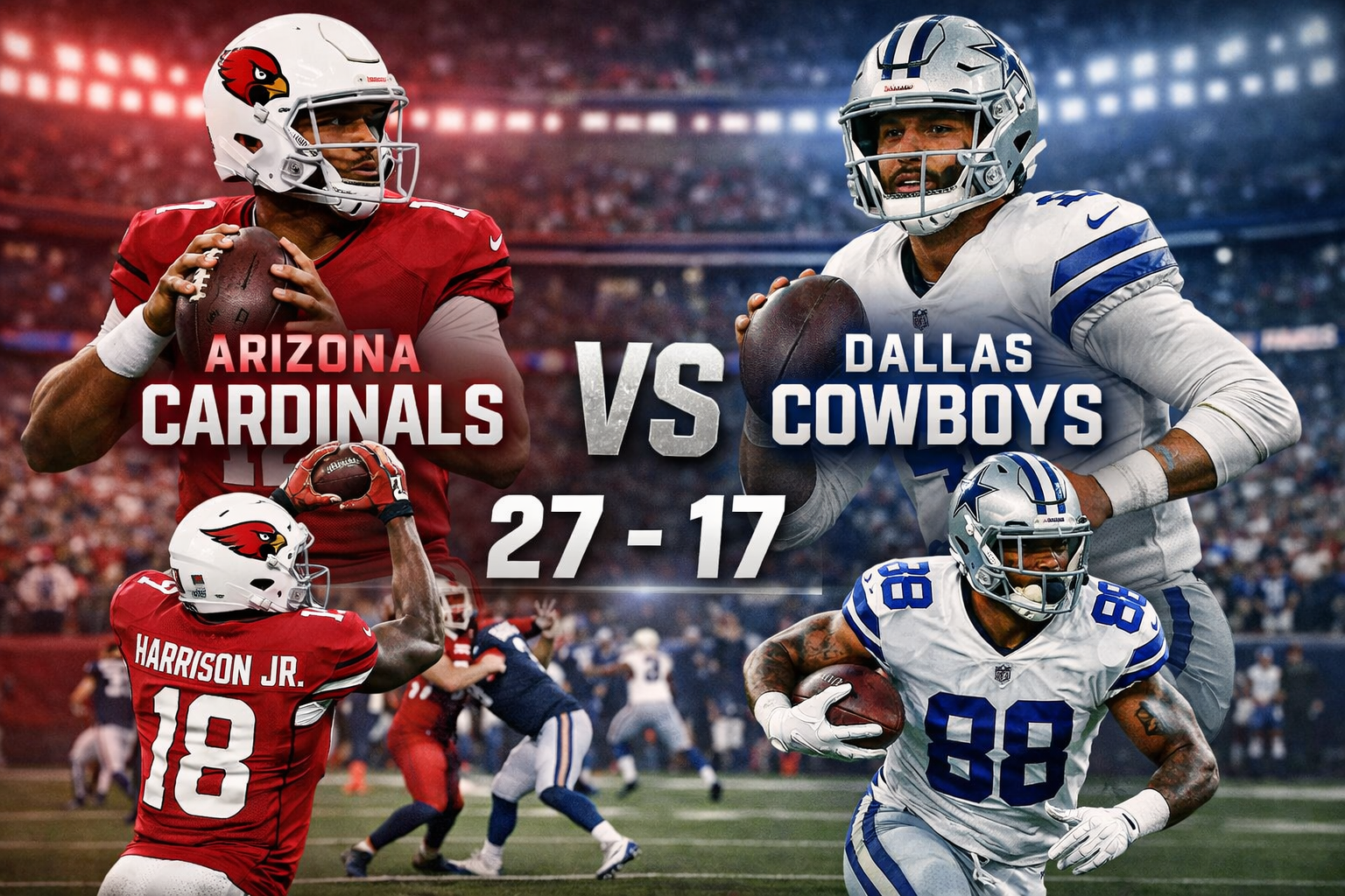 In a surprising result, the Arizona Cardinals defeated the Dallas Cowboys 27–17. While the Cowboys had been averaging a higher offensive output, the Cardinals’ defense and opportunistic playcalling helped swing the game in their favor. This victory marked a meaningful shift in momentum for Arizona and exposed several key statistical takeaways.