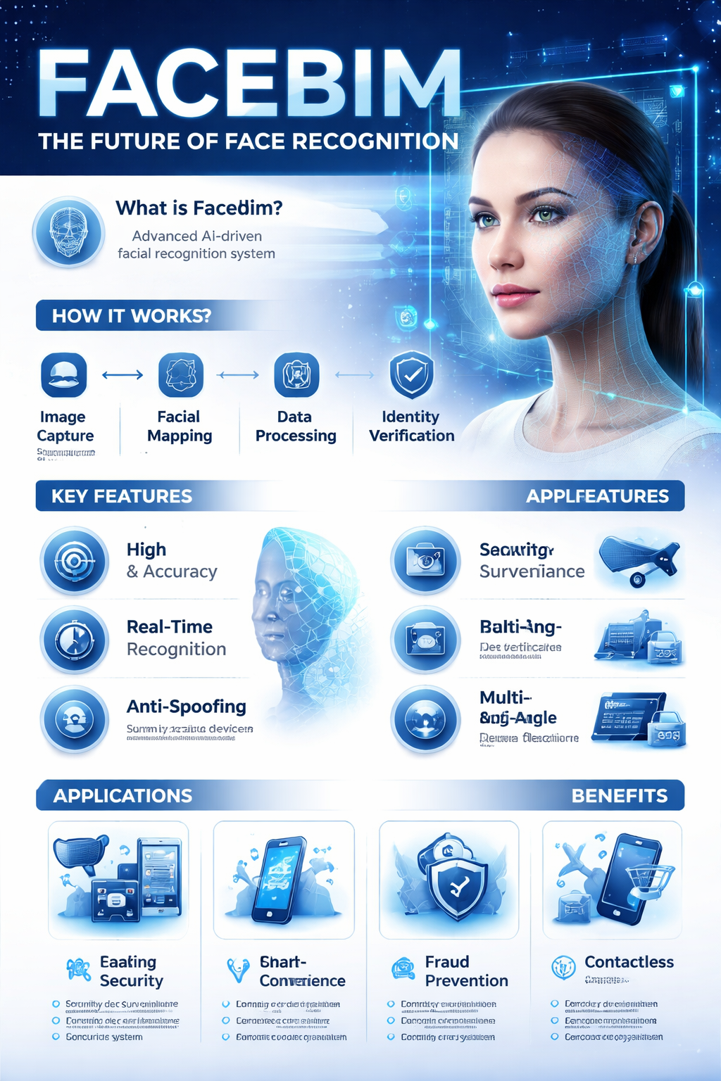 Facebim is an advanced facial recognition system that uses biometric intelligence to identify, analyze, and verify human faces. The term “Facebim” can be understood as a combination of “Face” and “Biometric Intelligence Model.” It focuses on creating a highly accurate digital identity using facial features.